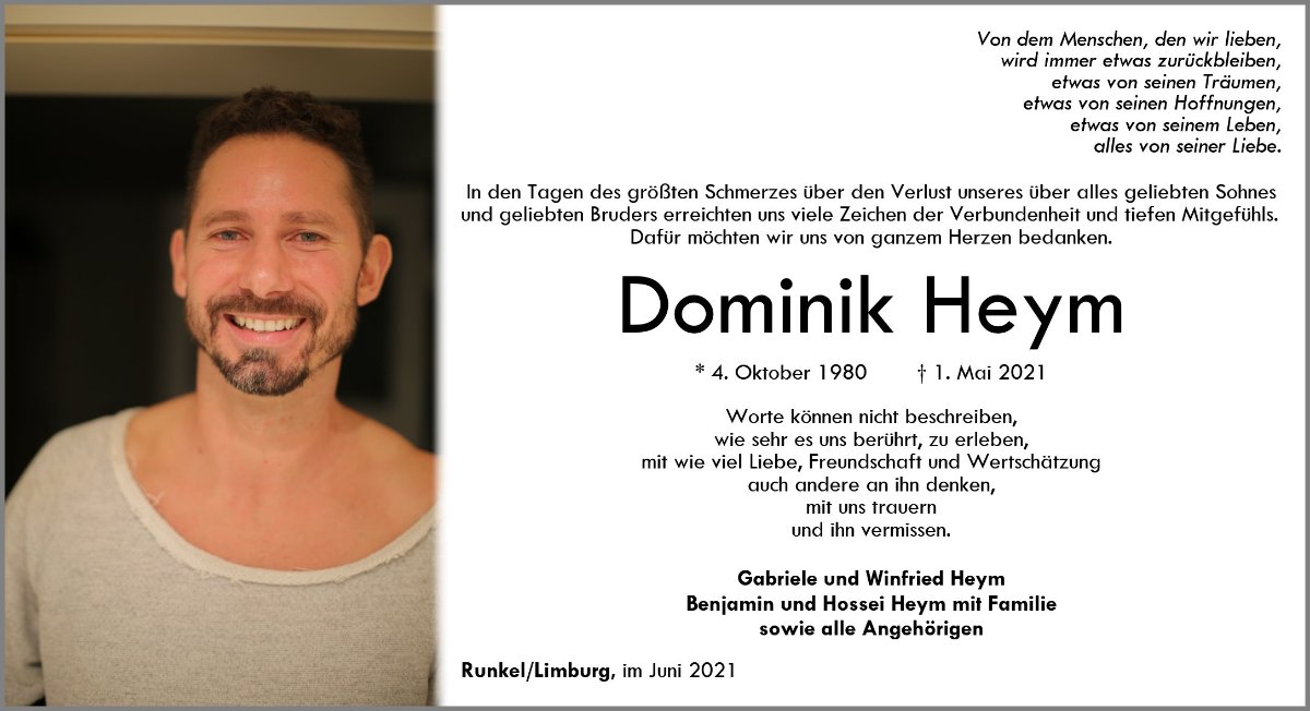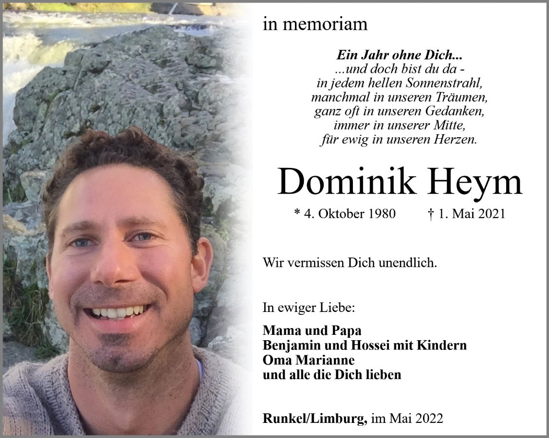 Dominik Heymgestorben am 1. Mai 2021