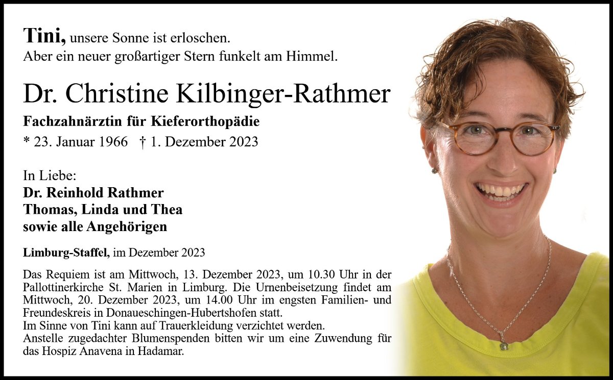 Dr. Tini Kilbinger-Rathmergestorben am 1. Dezember 2023